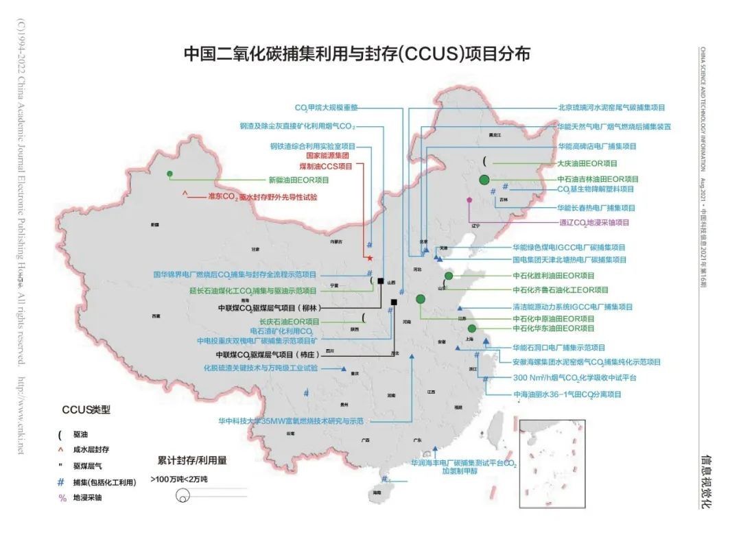 未来十年是规模化推广CCUS应用的关键时期。放眼全国,多个省份正在加快布局CCUS项目,2021年底CCUS项目已在中国落地近30项。